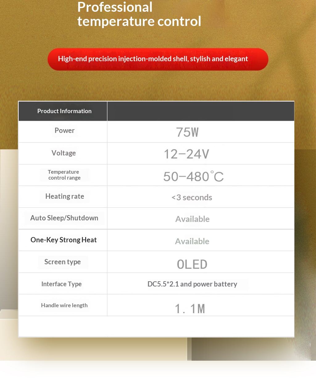 Power:75WVoltage: 12-24VDisplay: OLED