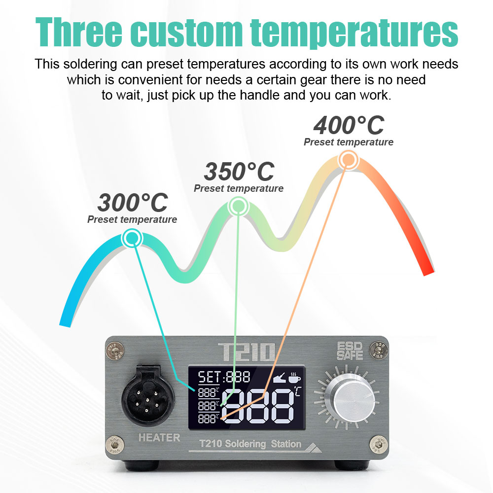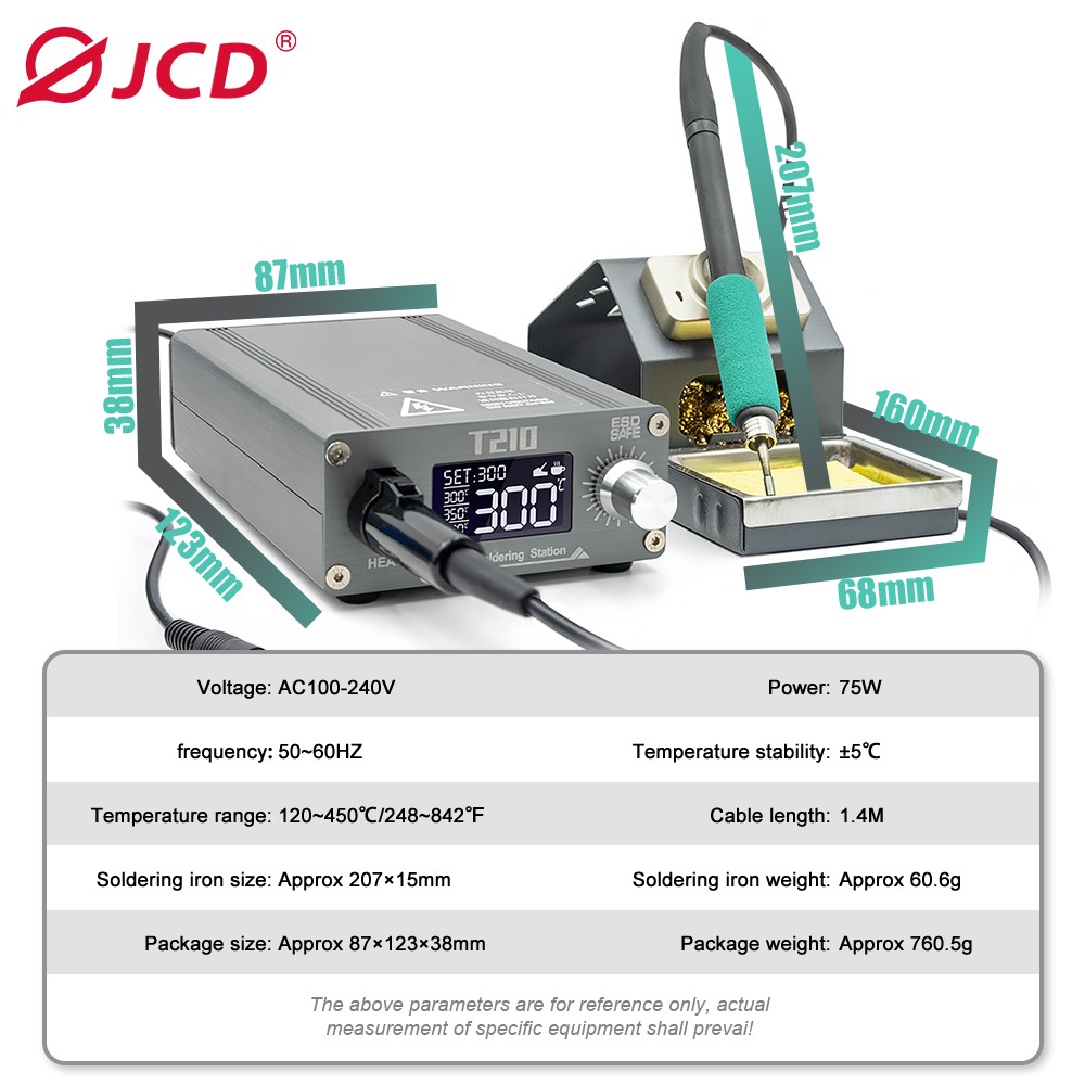 T210 Rapid Warming Automatic Sleep 2S Melting Tin Professional Mobile Phone Repair Constant Temperature Soldering StationVoltage:100-240VPower: 75WTemperature: 120-450℃